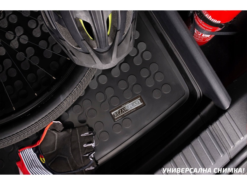 Този комплект е предназначен за първи и втори ред седалки. Състои се от четири части и включва стопери за предните стелки. Предлага се допълнителен комплект стопери за задните стелки. Стелките се предлагат и в други цветове: сив и бежов.